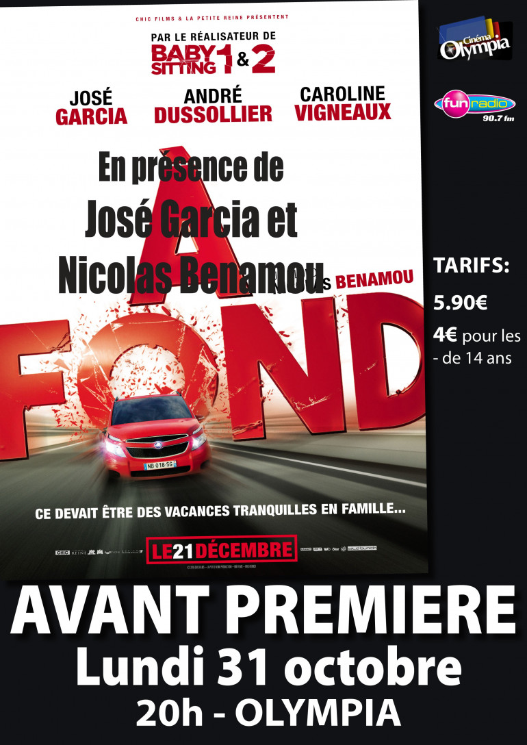 Gagnez vos invitations pour l'avant première du film " à fond ! " en présence de l'acteur José Garcia ce lundi 31 octobre à 20h au cinéma olympia de Dijon.