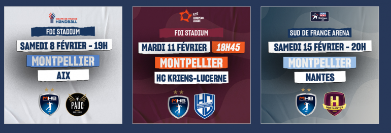- Mardi 11 février 18h45 : Montpellier vs HC Kriens - Lucerne au FDI STADIUM " European League "