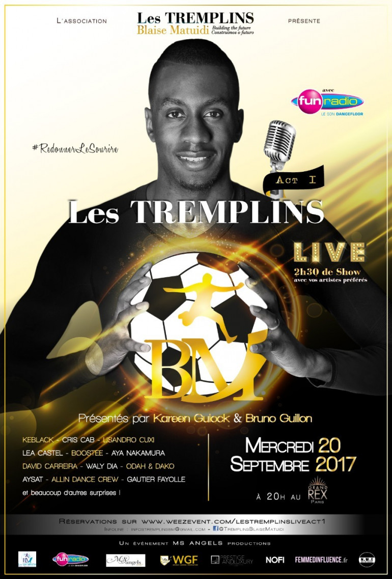 Les Tremplins Blaise Matuidi ont été créés il y a un an par le footballeur. L'association se définit comme facilitateur de projet pour les jeunes et intervient dans le monde entier sous diverses actions telles que l'accompagnement scolaire, la construction de pensionnat ou dispensaires, le don de matières premières, le paiement de bourses scolaires ou encore l'accès au divertissement.