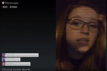 WTF VIDÉO - Elle annonce qu'elle est ivre dans un direct vidéo et se fait arrêter par la police Samedi 10 octobre, une Américaine de 23 ans a été arrêtée à Lakeland (Floride) après s'être filmée ivre au volant et avoir diffusé la vidéo en direct sur l'application Périscope. publié le 15/10/2015 à 11:09