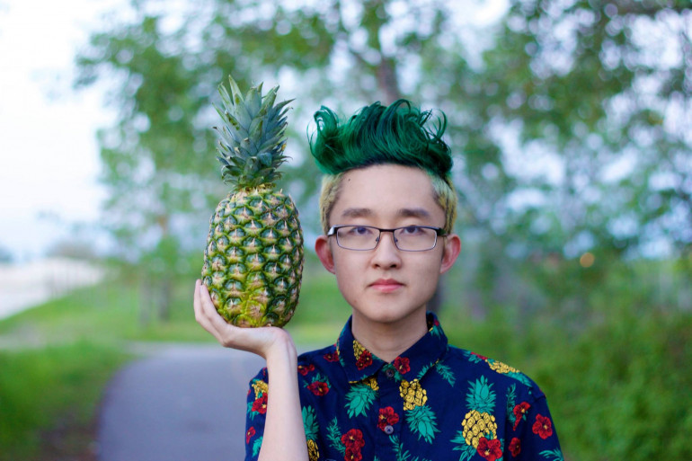 Une fois son nouveau look terminé, l'étudiant a décidé de jouer le jeu jusqu'au bout. Affublé d'un ananas et d'un tee-shirt aux motifs assortis, il pose devant la caméra. Même si la coiffure n'est pas du goût de tout le monde, il faut avouer que le résultat est tout de même très réaliste.