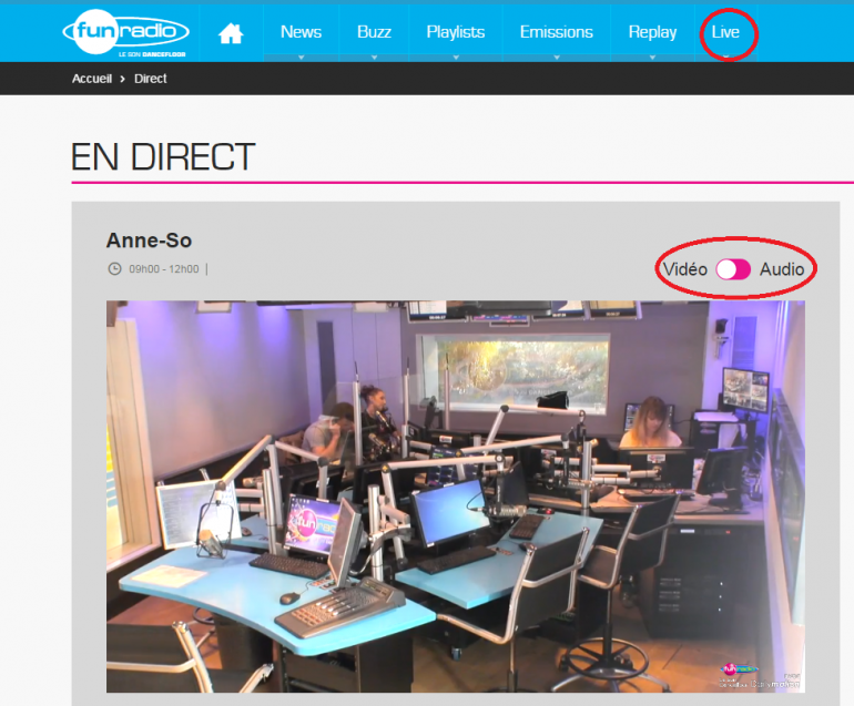 Le live vidéo est accessible grâce à l'onglet : Live.
