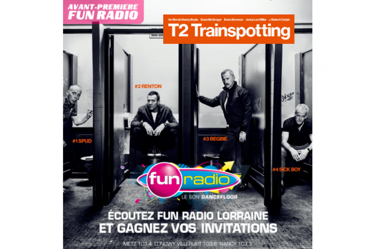 Ecoutez Alex entre Midi & 16h sur FUN RADIO LORRAINE & gagnez vos invitations pour l'avant-première du film T2 TRAINSPOTTING, Lundi 27 février à 20h, UGC Ciné Cité à Ludres.