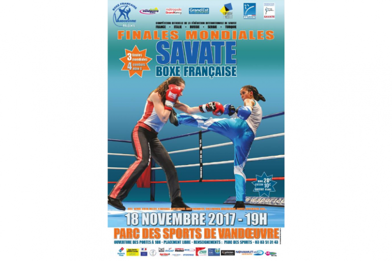 Participez aux 3 finales mondiales de Savate Boxe Française, le samedi 18 novembre 2017, dès 19h au Parc des Sports de Vandoeuvre, avec le Club de Boxe Française Vandoeuvre & Fun Radio Lorraine. 3 finales mondiales, 4 combats élite A et 3 combats espoir. Plus d'infos, cliquez-ici.