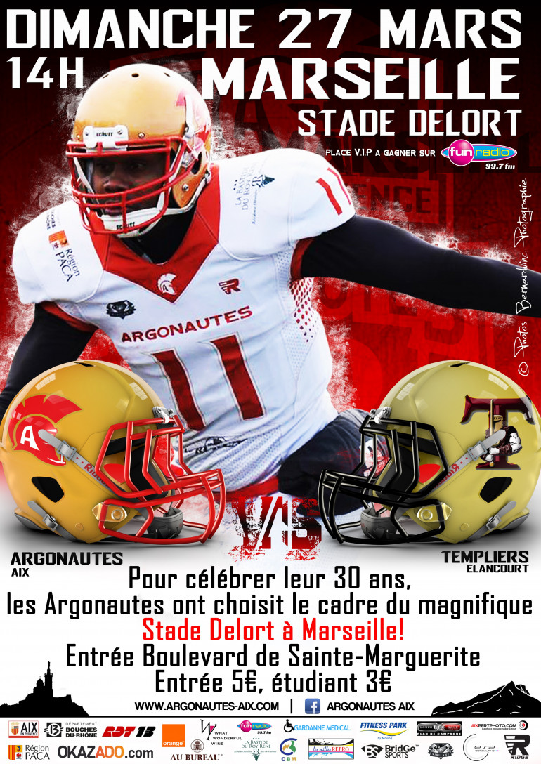 FUN RADIO Marseille vous offre vos invitations pour le match des Argonautes d'aix en Provence face aux Templiers d'Elancourt dimanche 27 mars à 14H, stade Delort à Marseille.