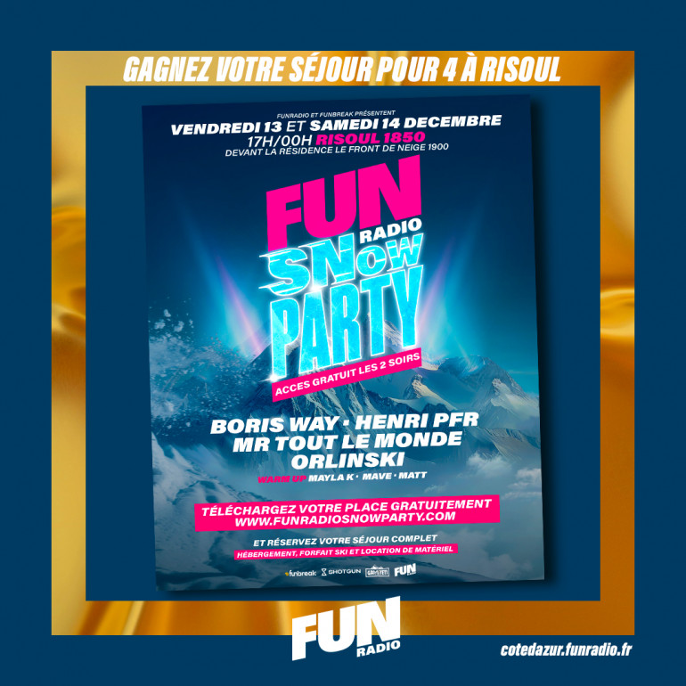 Toute cette semaine Fun Radio Côte D'Azur vous offre votre séjour à Risoul pour 2 personne les vendredi 13 et samedi 14 décembre avec hébergement, forfait ski et location de matériel