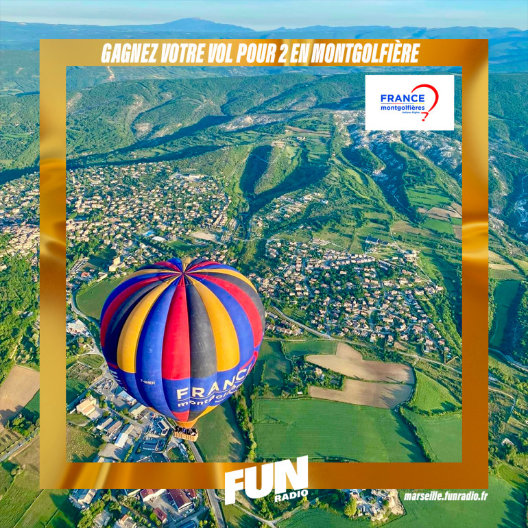 Toute la semaine, Fun Radio Marseille, vous offre votre vol de Montgolfière en duo avec France Montgolfières à Forcalquier. Pour jouer et tenter de repartir avec votre vol pour 2, envoyez le code "MONTGOLFIERE" et vos noms, prénoms, adresse, téléphone et mail à marseille@funradio.fr