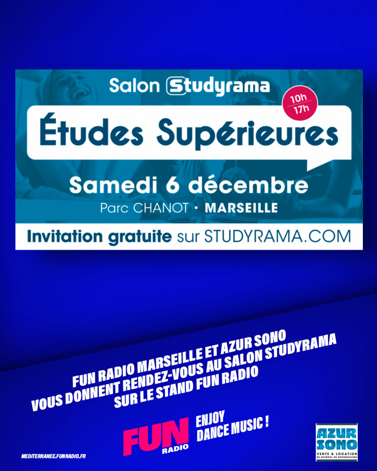 Rendez-vous le 6 décembre pour le salon Studyrama au Parc Chanot à Marseille avec Azur Sono et Fun Radio Marseille