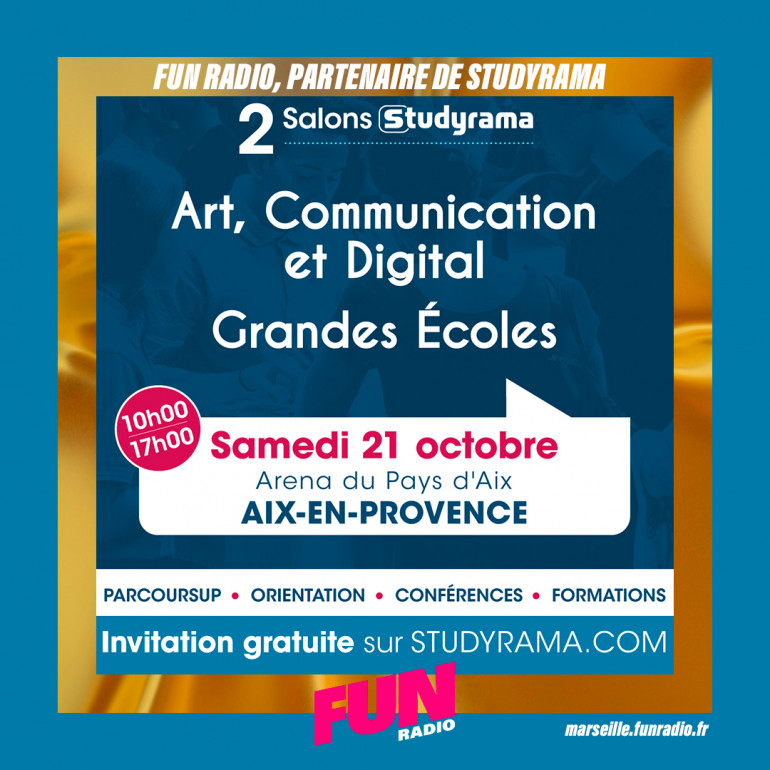 Le salon Studyrama des Formations Art, Communication et Digital d’Aix-en-Provence vous donne rendez-vous à l’Arena du Pays d’Aix, le samedi 21 octobre 2023, pour préparer votre futur ! Venez découvrir les conseils de professionnels