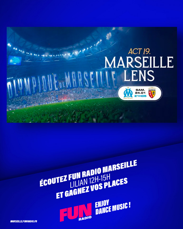 Écoutez Lilian entre midi et 15H ! Dès que vous repérez le signal du Smash Fun, appelez le 04 88 91 35 31 et tentez de repartir avec vos places pour le match OM/LENS le 24 janvier.