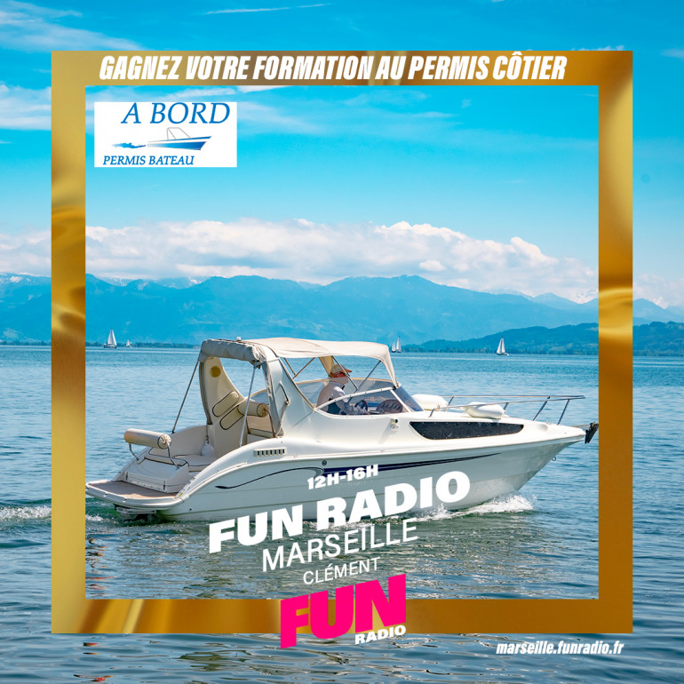 Cette semaine, Fun Radio Marseille et A BORD PERMIS BATEAU vous offrent votre permis côtier en formation rapide et simplifiée au 84 rue de Lodi, près de Castellane à Marseille !
