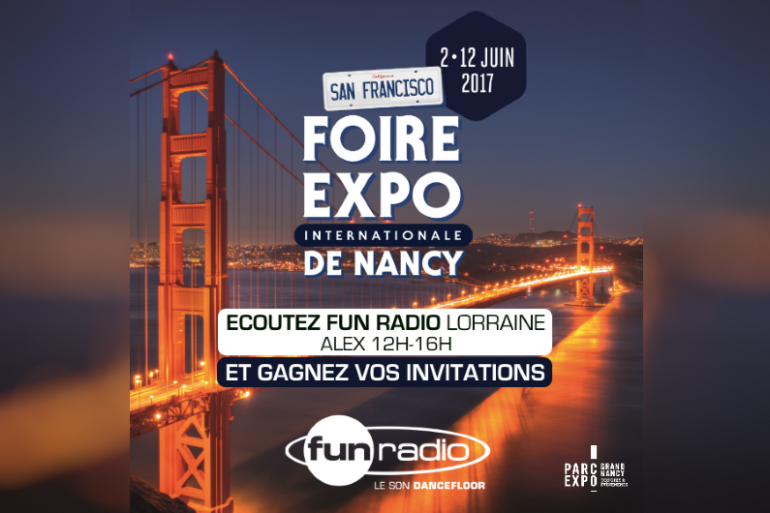 Vivez la 83ème Foire Internationale de Nancy, du 2 au 12 juin 2017, au Parc des Expositions de Nancy. 11 jours riches en festivités, surprises et découvertes sous le soleil de San Francisco et de la Californie.