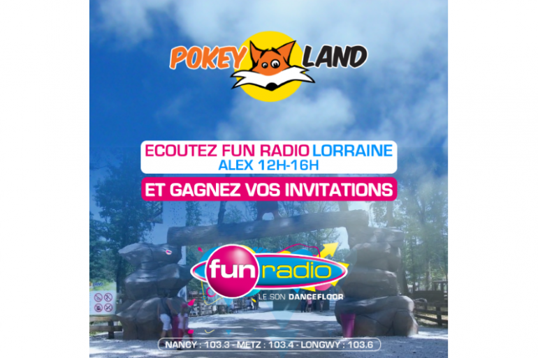 Ecoutez Alex entre Midi & 16h sur Fun Radio Lorraine & Gagnez vos invitations pour Pokeyland. Dés que vous entendez le signal Smash Fun, soyez les premiers à nous appeler au 03 83 55 80 80 pour vous inscrire. Jouez également sur notre page Facebook Facebook/CommunauteFunRadioLorraine > Envoyez un MP avec votre Nom Prénom Age Ville Tél & le Fun'Pass : "Activités".