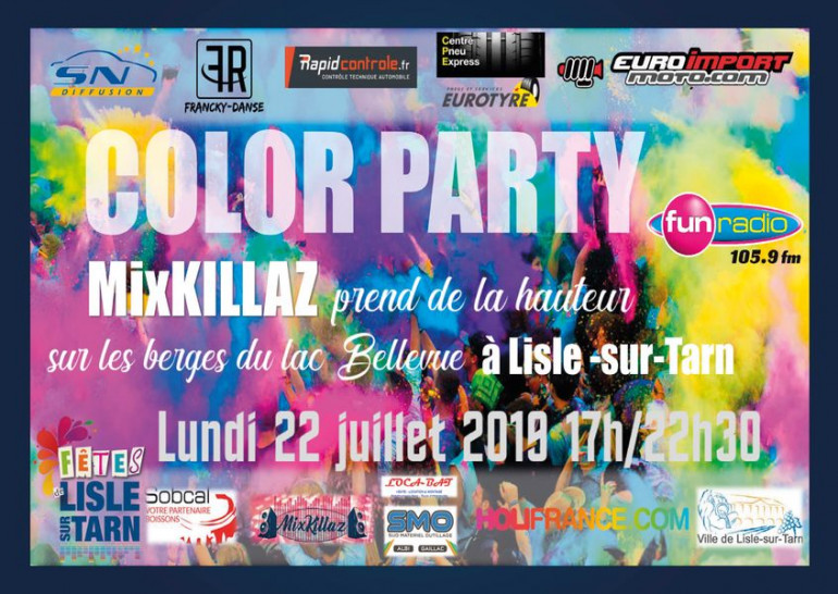 COLOR PARTY à Lisle sur Tarn c'est le 22 Juillet Accès A 68 sortie n8 entre Toulouse et Gaillac