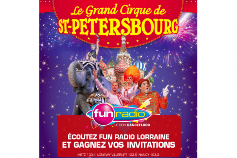 Ecoutez Alex entre Midi & 16h sur FUN RADIO LORRAINE & gagnez vos invitations pour le Grand Cirque de St-Petersbourg, du 10 au 12 mars au Parc des Expositions de Metz, et du 17 au 19 mars au Parc des Expositions de Nancy.