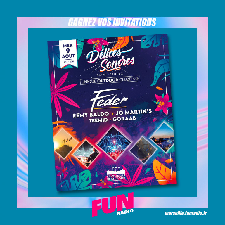 Envoyez dès maintenant le code "DELICES" ainsi que vos coordonnées par mail à marseille@funradio.fr et gagnez vos invitations pour les Délices Sonores avec Fun Radio Marseille !