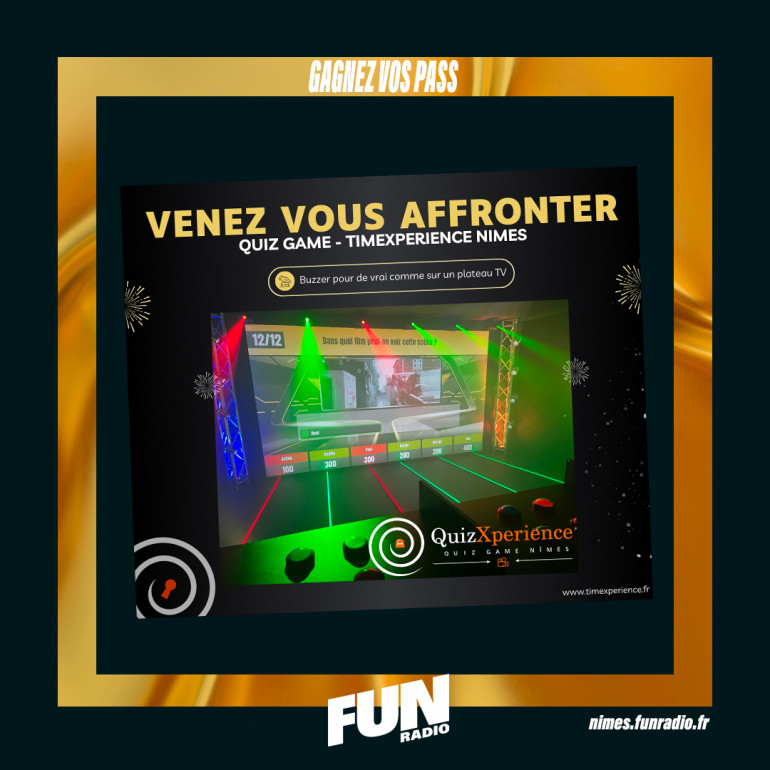 Avec le Smash Fun cette semaine vous gagnez vos places pour Quiz Game à Time Xperience avec Fun Radio Nîmes !