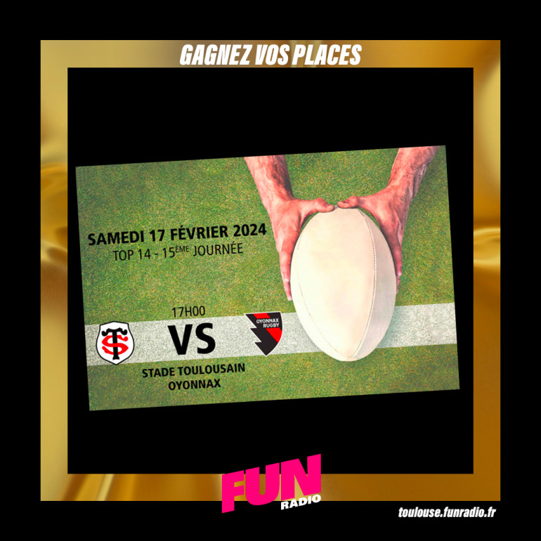 Rendez-vous ce samedi 17 février à 17h au Stade Ernest Wallon ! Pour tenter de remporter vos invitations et supporter le Stade Toulousain envoyez-nous un mail à toulouse@funradio.fr avec en objet : OYONNAX et comportant vos noms, prénoms, adresse et numéro de téléphone !