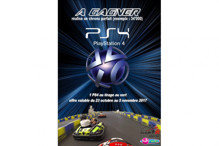 Durant la période des vacances scolaires au Kart'in Oberlin, tentez de gagner une PS4 en réalisant un temps parfait (temps pile : exemple 34'000)