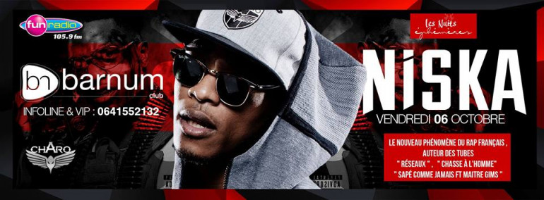 L'équipe des Nuits Ephémères , présente NISKA , le phénomène français le vendredi 6 Octobre au Barnum Club !
