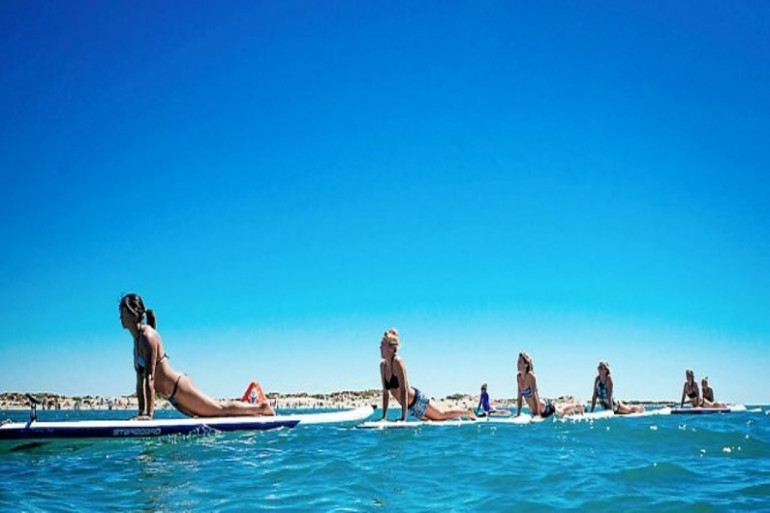 Jusqu'à mi-septembre, Mélanie donne des cours de “sup yoga” sur la plage de la Motte du couchant, à La Grande-Motte, les samedi et dimanche matin.
