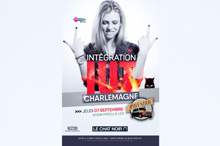 Prêt pour une nouvelle saison ? c'est le grand retour des soirées étudiantes au Chat Noir, Nancy Centre. Ce jeudi 7 septembre, Intégration de L'IUT Charlemagne ! Une soirée pleine de surprises. Start : 23h30 ! Accès à 5€ & tarifs lites sur les consommations. Infos et résas au 06.01.48.84.87. Avec Fun Radio Lorraine.