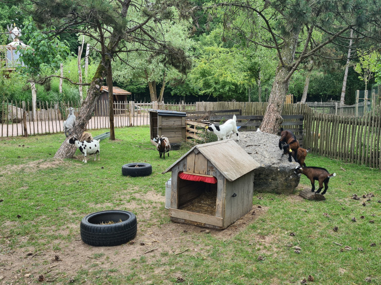 A deux pas, la chèvrerie a toujours beaucoup de succès. L’enclos d’immersion permet aux jeunes (mais également aux adultes !) d’aller au contact direct des animaux. Ils peuvent ainsi les caresser ou encore les brosser.