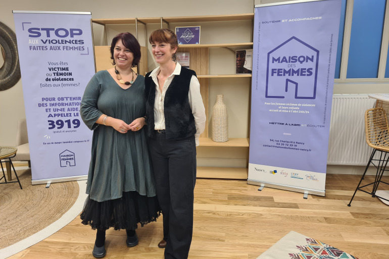 La présidente de la Maison des Femmes Christelle Mauss (à gauche) et la directrice Nathalie Dormeyer lors de l’inauguration le 3 novembre 2025