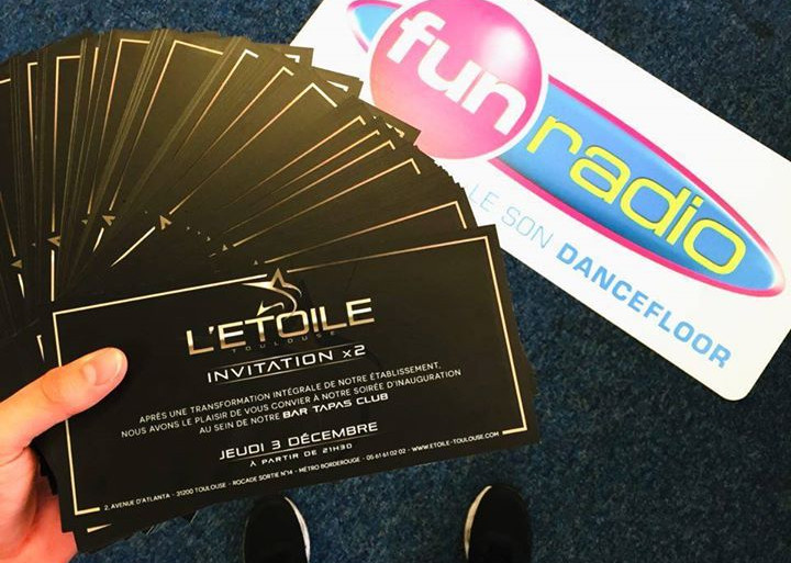 Pour gagner vos invitations pour deux personnes à l'inauguration Jeudi 3 Décembre envoyez maintenant par mail à toulouse@funradio.fr votre NOM + PRENOM + NUMERO DE TELEPHONE en Objet: ETOILE