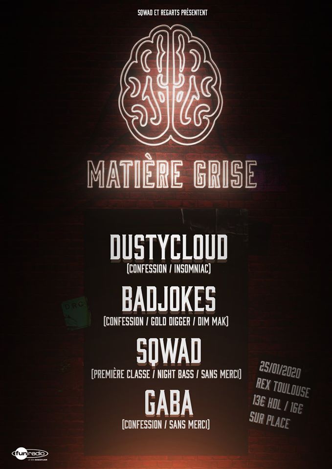 Après plusieurs mois de travail acharné SQWAD & Regarts s'allient pour vous présenter MATIERE GRISE, un événement entièrement consacré à la culture HOUSE / BASS-HOUSE !