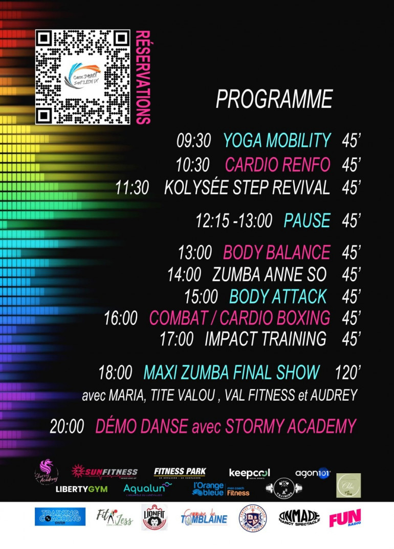 La journée se terminera par le "Maxi Zumba Final Show" où 4 intervenantes se succèderont.