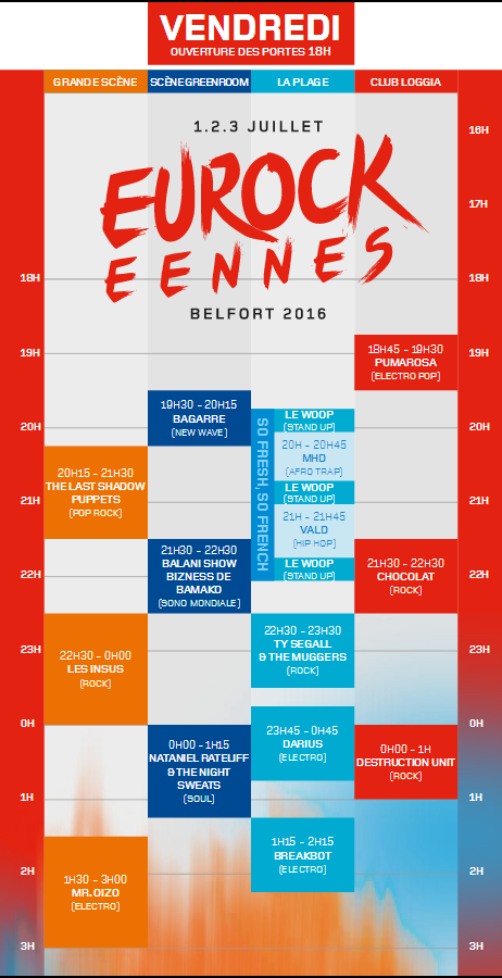 Programmation Eurockéennes - Vendredi 1er juillet 2016