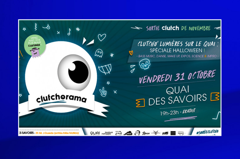 Embarquez pour une soirée d’Halloween hors du commun ! Vendredi 31 octobre, dès 19h, le Quai des Savoirs se transforme pour accueillir la Soirée Clutcho' : DJ sets, initiations au djing, danse, théâtre d’impro, expos, installations artistiques… le tout dans une ambiance « emportés par la foule ».