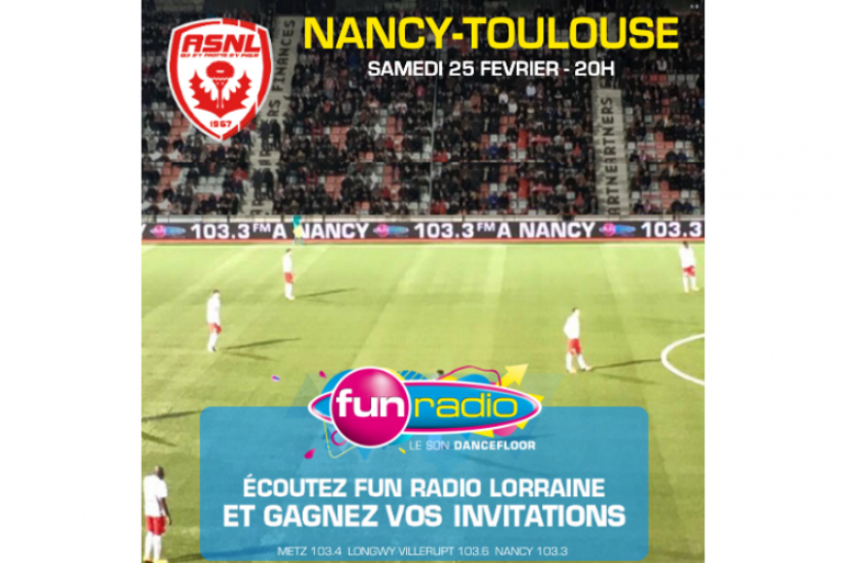 Soutenez l'ASNL, avec FUN RADIO LORRAINE. samedi 25 février à 20h, les Nancéiens rencontrent l'équipe de Toulouse, au Stade Marcel Picot, à Nancy. Ecoutez FUN RADIO & Gagnez vos invitations.