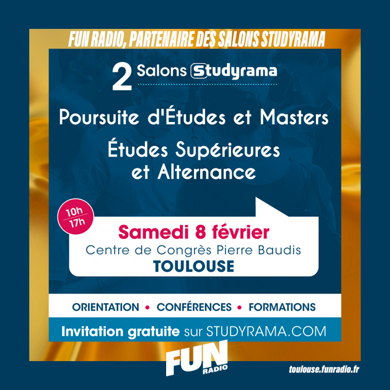 Le salon Studyrama des Etudes Supérieures et de l’Alternance de Toulouse vous donne rendez-vous au Centre des Congrès Pierre Baudis, le samedi 8 février 2025, pour préparer votre futur !