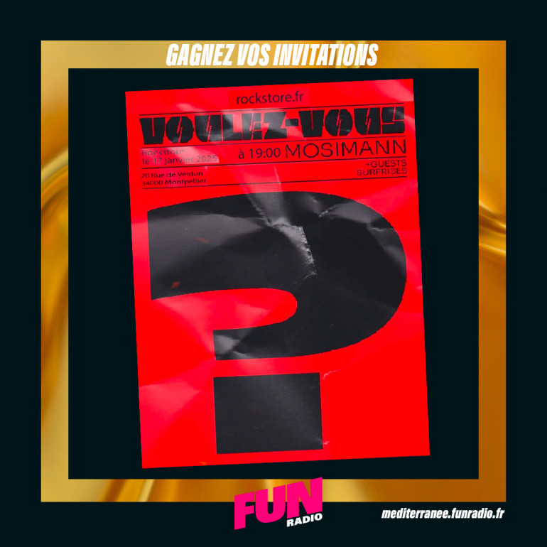 Envoyez le code " MOSIMANN " avec nom/prénom et numéro de téléphone par mail à montpellier@funradio.fr