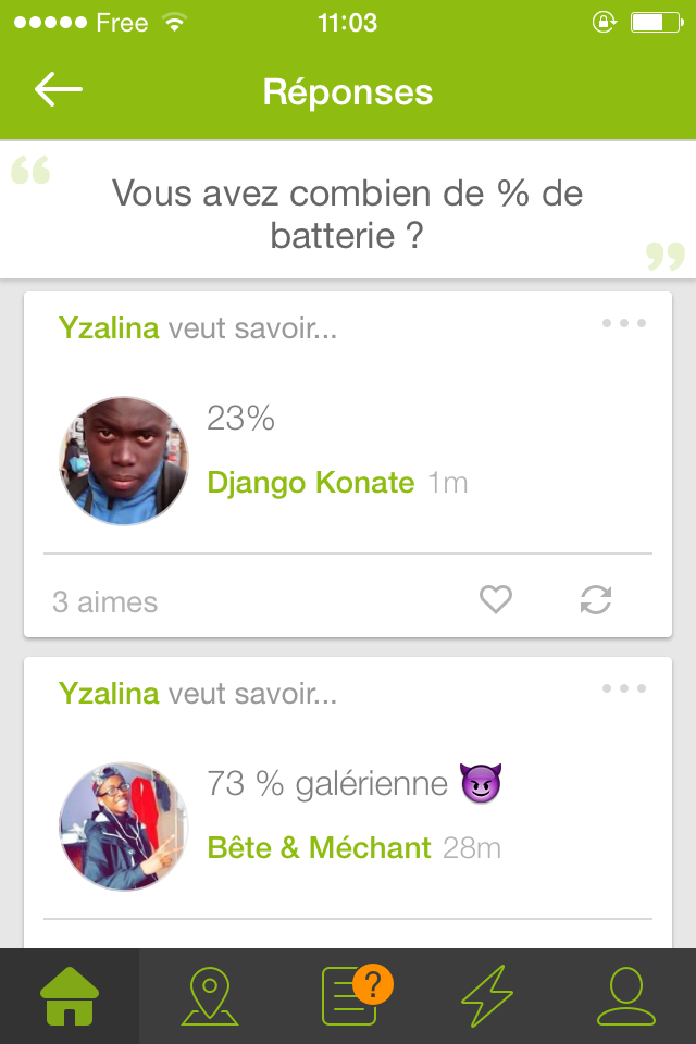 Vous avez combien de % de batterie ?