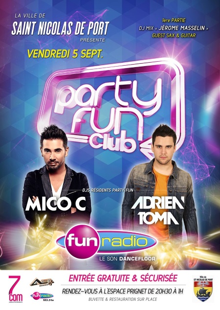 Vendredi 5 Septembre, venez faire la fête sur le meilleur du Son Dancefloor avec les DJs Résidents Fun Radio Mico C & Adrien Toma qui vous mixeront tous les tubes de Party Fun, l'émission Numéro en France le week-end !