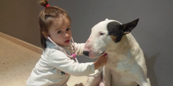 Les vidéos d'enfants jouant avec des chiens de grosse taille sont toujours impressionnantes. Après la petite fille donnant à manger à six pitbulls affamés mais disciplinés, voici une femelle bull terrier qui a droit à un examen médical complet par la fille de son propriétaire.