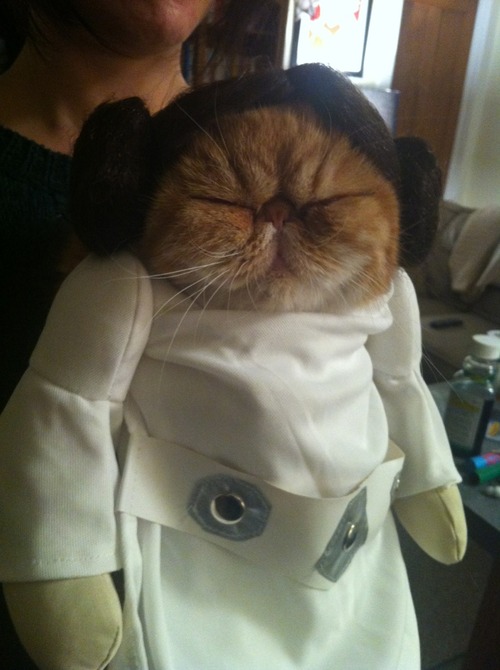 Les fans de Star Wars ne devraient pas être déçus. Avouez que ce chat est splendide en princesse Leïa ?
