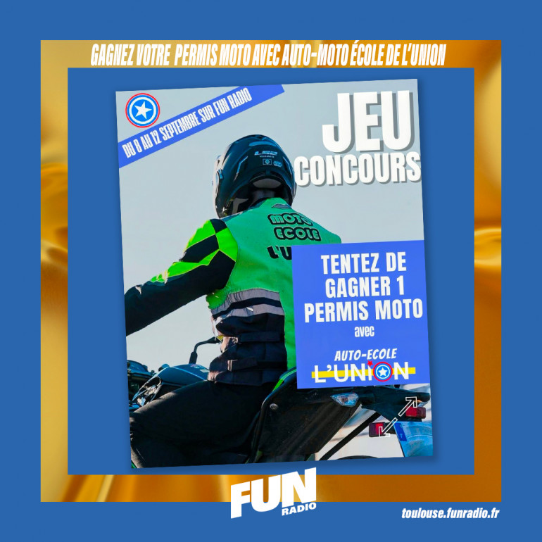 Fun Radio Midi Pyrénées vous offre votre moto avec l'auto école de l'union.