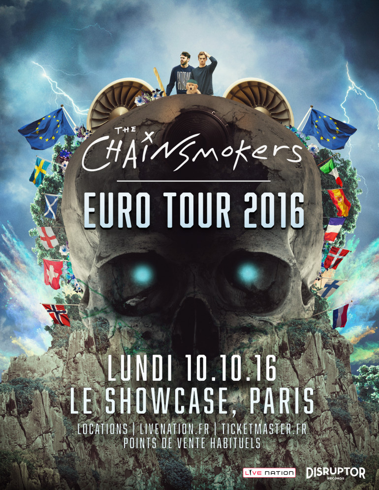 THE CHAINSMOKERS - SHOWCASE, 10 octobre 2016 - Affiche officielle de la tournée européenne