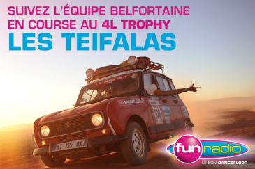 Belfort Suivez Les Teifalas au 4L Trophy Fun Radio, partenaire du binôme Belfortais "Teifala" en direction du Maroc ! publié le 03/10/2016 à 18:30